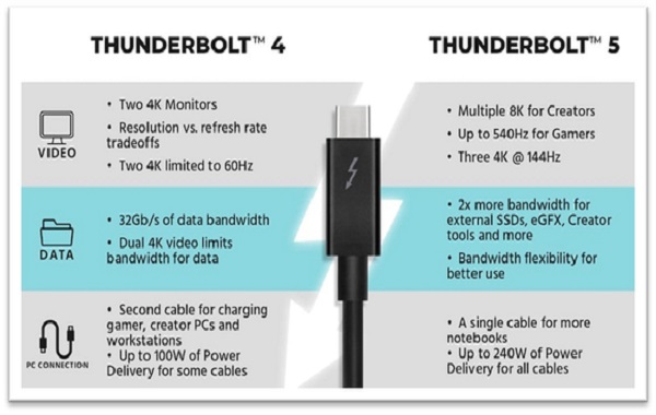Blitz-Anschluss von 10 Gbps (Blitz 1/2) auf 40 Gbps (Blitz 3/4) und schließlich auf 80 Gbps (Blitz 5) erhöht die Anforderungen an die Design der Kabelbäume:
